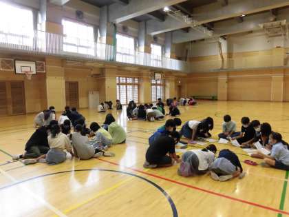本日朝、6年生全員が体育館に