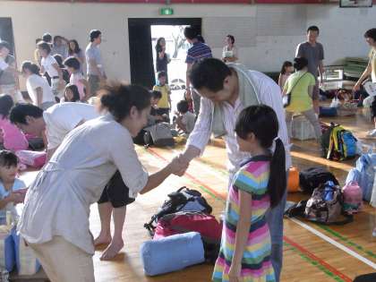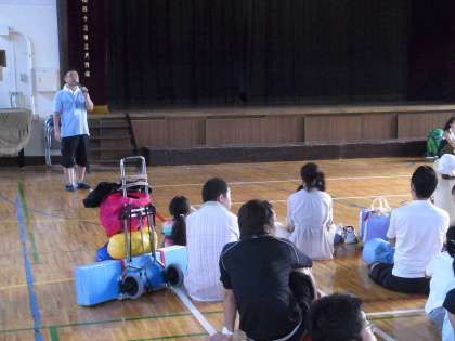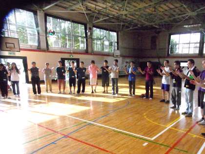 山のキャンプ実行委員長森戸さんのあいさつで、この山のキャンプも終わりです。震災から6か月、今なお8000人以上の方々が避難所生活をしています。今回の経験で、その方々の思いを感じたり、いざ震災時の心構えを作ったりすることが一番の願いです。恒例となったみんなで握手でお別れのあいさつをし、スタッフで一本じめをしました。本当にお疲れ様でした。