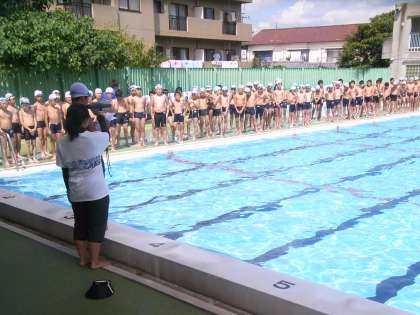 5年生は今日で水泳の学習は終わりです。それぞれのめあての達成を確認したり、仲間と協力してゲームをしたりして、最後の時を楽しみました。来年は6年生、より高い目標に向けて頑張るという決意の言葉も代表の言葉に盛り込まれていて、うれしくなりました。
