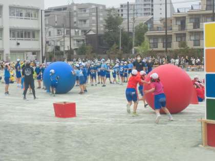 なかなか頭上に上げることができないチームや、送っているときに玉がはねて行き過ぎてしまうチームなどがあり、これも大いに盛り上がりました。