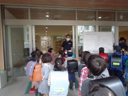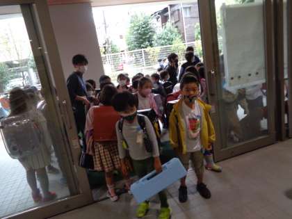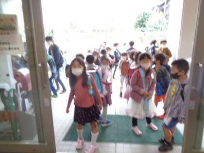 朝、1年生が整列していました。