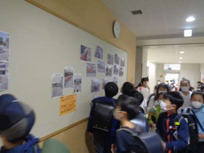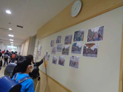 掲示板に、6年生の応援団の写真が貼られていて、下級生が見ていました。かっこいい姿が憧れとなって、代々受け継がれているのです。
