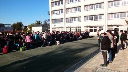 良い天気になりました。実行委員の司会で出発式を行いました。
