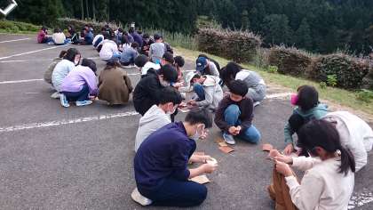 おしゃべりを楽しみながら、しっかりとヤスリをかけて、表面を磨いています。