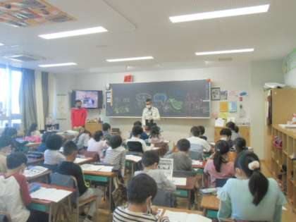 今日は成城消防署と砧町町会、学校支援コーディネーターの方々をお招きして、出前授業をしていただきました!