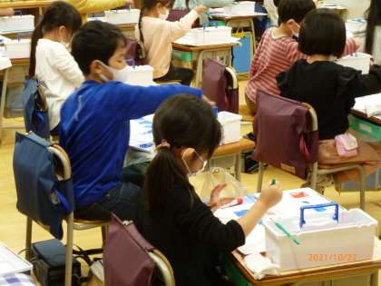 みんな、筆を丁寧に動かしてはみ出さないよう、真剣に塗っていました。