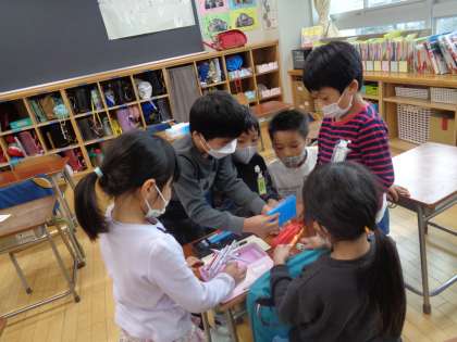 今日は1日雨でした。休み時間は、教室で静かに過ごしました。各クラス、工夫して遊んでいました。
