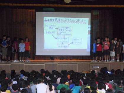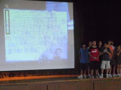 運営代表委員会の児童たちが、ユニセフ集会を開きました。ユニセフの活動について調べたことを報告してくれると同時に、世界中でたくさんの子どもたちが苦しい生活をしていることを伝えてくれました。今、私たちができることは何か、その一つとして20日、21日の二日間募金活動をしてくれます。