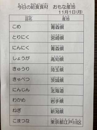 11月1日 今日の給食