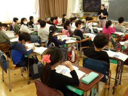 今日は、「はじめ」「なか」「おわり」の構成のあらましを捉える時間でした。問いの文や答えとなる文を見つけ、みんなで確認をしました。