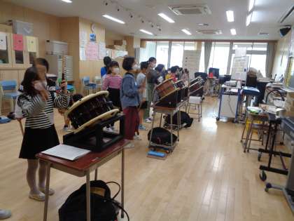 3年生の様子です。音楽室で、「音楽」のチームが練習していました。楽譜を見ながら、和太鼓をリズムよく叩く練習をしていました。まだ、個人練習の段階です。これから、全体で合わせていくのでしょう。どのように仕上がるのか楽しみです。