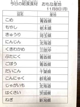 11月8日 今日の給食