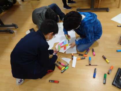 やまのフェスタを盛り上げるための装飾や看板作りをしていました。いよいよ来週に迫ってきて、校内全体がやることに追われている感じがします。
