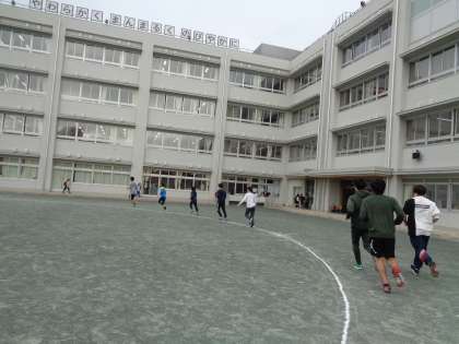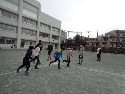 トラック8周(1km)を何分で走れるか計りました。先生達も一緒に走りましたが、子供たちのスピードにとうてい追いつけませんでした。