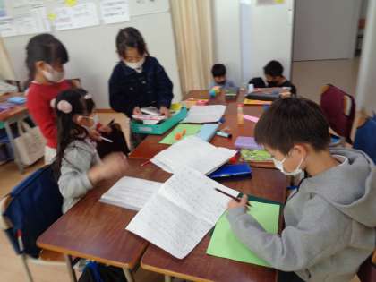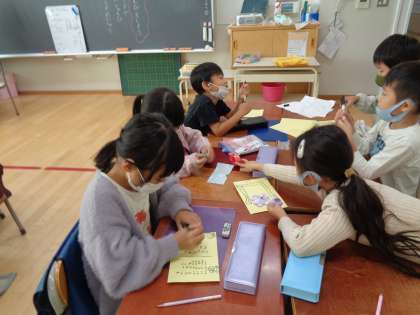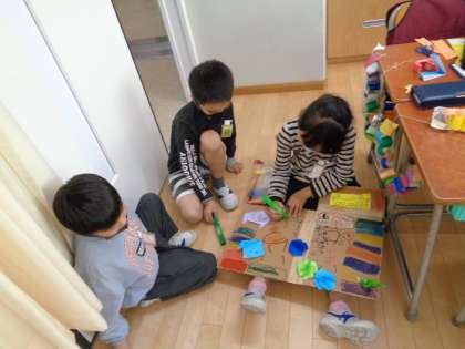 なぞなぞを作る係、かんばんやかざりを作る係など分担して作業していました。