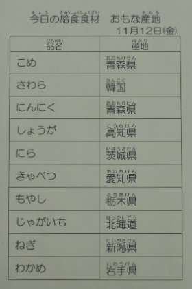 11/12 今日の給食