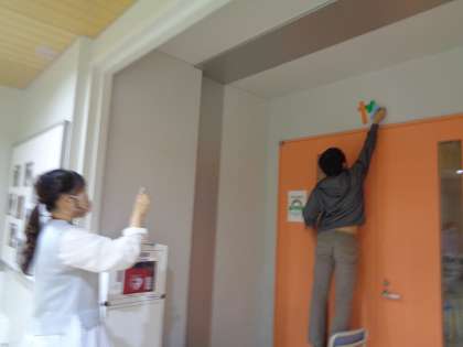 代表委員さんが、体育館の入り口の装飾をしてくれました。