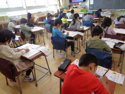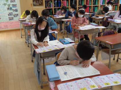 廊下は、やまのフェスタの準備の喧騒であふれていますが、気にせず集中していて立派です。
