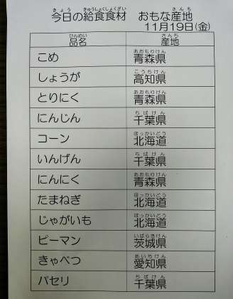 11/19 今日の給食