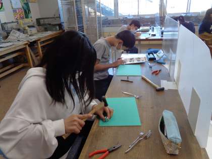 図工室に移動して、さっそく版を作りました。