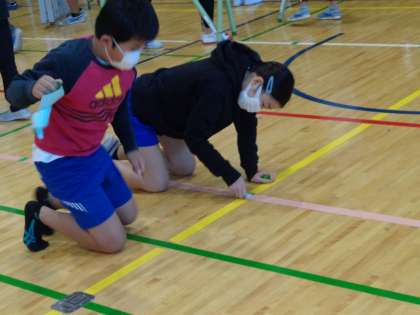 体育館の雛壇やステージなど声を掛け合って進んで運んでくれました。床のテープを剥がしたり、掃除をしたりと体育館をとても綺麗にしてくれました。