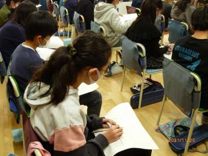 ついこの間、やまのフェスタのフィナーレで立派な合唱があったばかりでした。今日は、「変わらないもの」「ぼくらの未来へ」の曲を鑑賞して、卒業式に向けてのイメージをつかむ時間にしていました。
