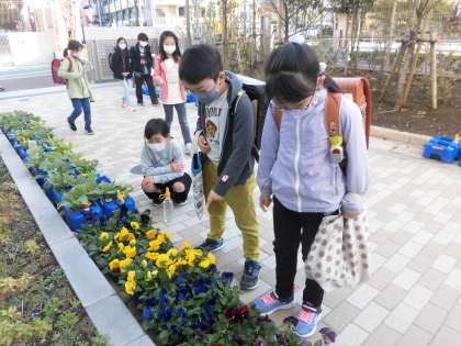 パンジーの花を見て、「きれい!!どの花がいい?」と弾んだ声で話していました。すてきな感性だなと思いました。
