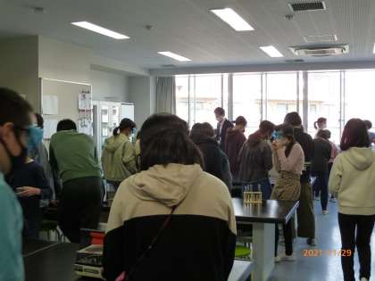 6年生の理科の授業です。「水溶液に溶けているものを調べよう」という単元で、刺激の強いものもあるので、みんなゴーグルを装着するなどして透明の水溶液を火にかけてどんな成分が出てくるかを調べていました。水が蒸発した時の写真などiPadで撮って表にまとめていて、見ていてとても分かりやすかったです。