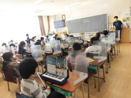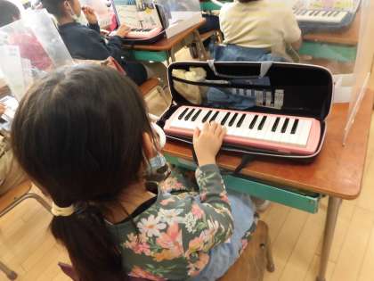前回は、「きらきらぼし」の歌をたくさん歌って楽しんだので、今日は鍵盤ハーモニカで弾けるように練習しました。