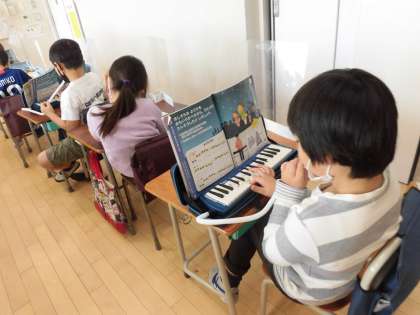 そして、いよいよチャレンジです。先生の伴奏に合わせて、みんなでゆっくり弾きました。