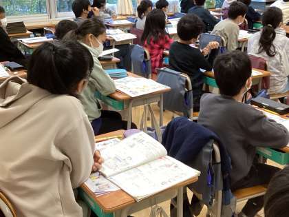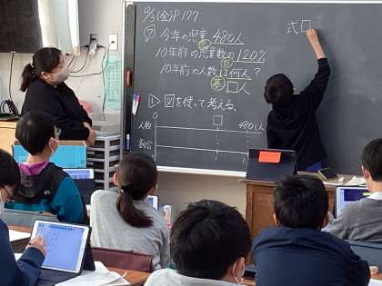 5年生の授業の様子です。1枚目2枚目は算数、3枚目は家庭科の授業の様子です。
