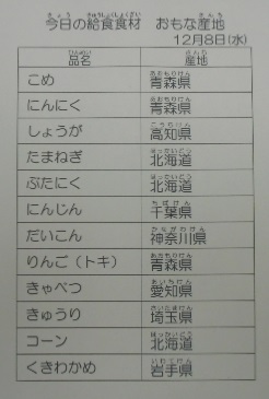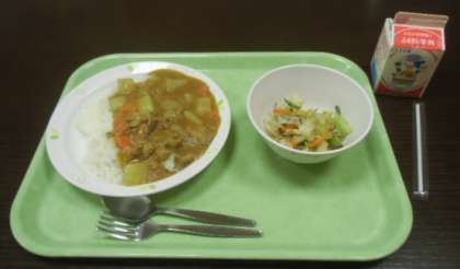 今日のメニューは冬のカレーライス、じゃこと海藻のサラダ、牛乳です。