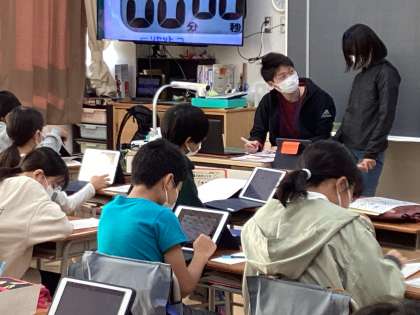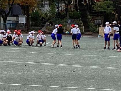 校庭で2クラス合同で、ボール運びリレーをしていました。ボールを運ぶ相棒と息を合わせるのが難しそうですが、みんな声を掛け合って運んでいました。教室では、文集の仕上げに向けて先生と確認したり、社会科の学習のパンフレットを仕上げたりと、それぞれが自分の課題にしっかりと取り組んでいました。