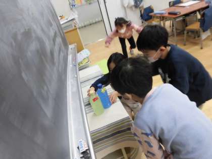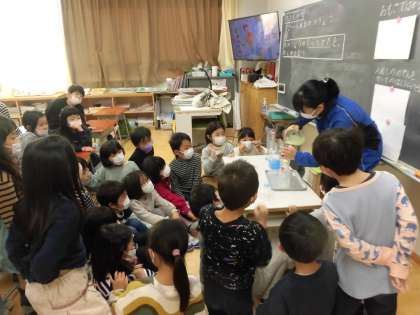 「同じカップに入れて高さを比べる。」「入れかえて、あふれた方が多い。」などよく考えた意見が発表されました。