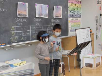 トライアングルとすずのリズムを変えたり、ゆっくり優しくならしたりして、とてもすてきな音色でした。星が輝く様子が見えてきました。