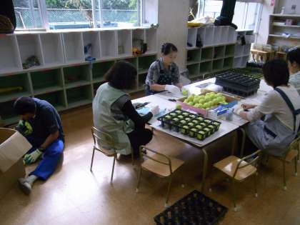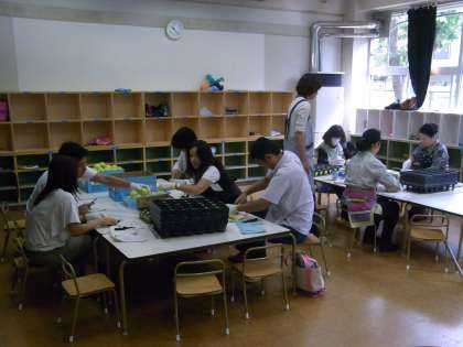 土曜公開日には、学校運営委員会の声かけで「テニスボール大作戦」が行われます。教室の机と椅子の足に使い古したテニスボールをつけて、音対策をするものです。ドリルで穴をあけ、カッターで切りこみを入れ、十分乾燥させた上で使用しています。参観の合間をぬって、たくさんの保護者の方がお手伝いに来てくださいました。ありがとうございます。