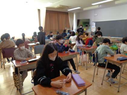 先生が「テストをします。」と言うと、サッと机を動かし、すぐにテストの態勢になりました。無駄なおしゃべりは一切ありません。テストが配られても静かに隣の人に渡していました。