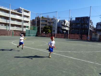 「走の運動遊び」のまとめとして、リレーを行いました。