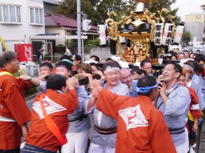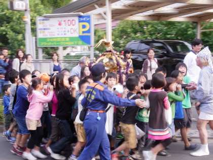 おやじネットの皆さん、そして、イベント大好き溝口学校長が参加し(どこで担いでいるかわかりますか?)、地域の安全、発展を願っていました。