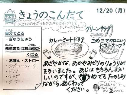今日は12月20日、今年の給食は22日までです。