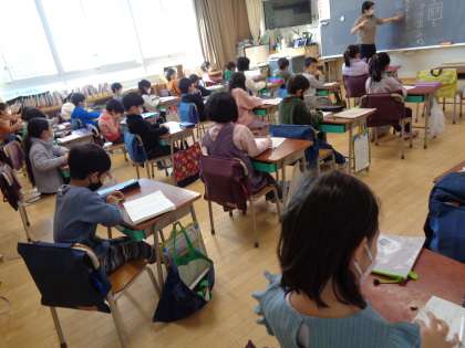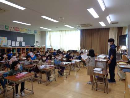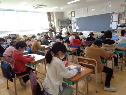朝学習を終えて、朝の会を行っているクラスもありました。