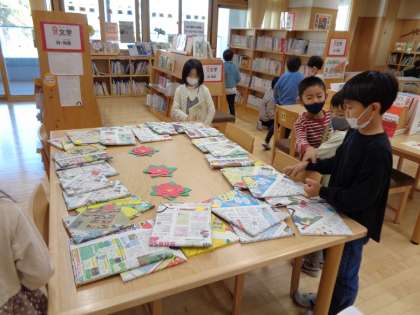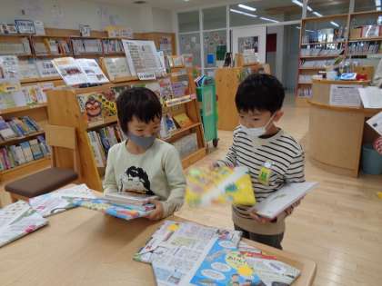 それは、図書室の本を図書委員さんがきれいに包装してくれたものです。冬休みに借りられる3冊の本のうち、1冊がそのプレゼントなのです。包まれているので、何の本か分かりません。1年生はわくわくしてプレゼントを選んでいました。