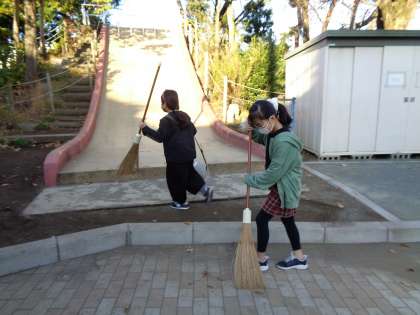美化委員さんが落ち葉をていねいに掃除をしてくれていました。