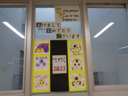 一番下の写真のトラは、2年生の先生が描きました。さて、どの絵が誰先生か分かるかな?