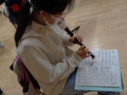 リコーダーで「威風堂々」を練習していました。