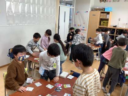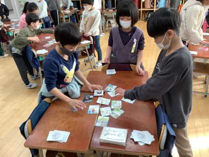 「砧かるた」は砧地域のことが読み札に書かれています。「区内では マンモス校だ 山野小」自分たちの学校がかるたになっていてびっくりしていました。