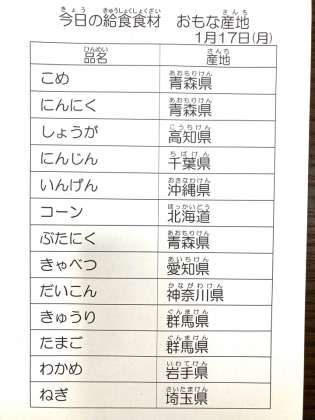 1月17日 今日の給食