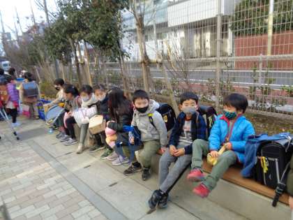 今日のベンチは2年生でした。のんびりとチャイムが鳴るのを待っていました。