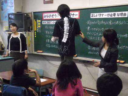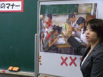 正しいマナーで食事をすることの重要性を学ぶ授業です。