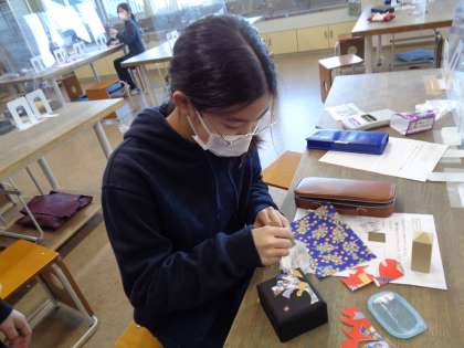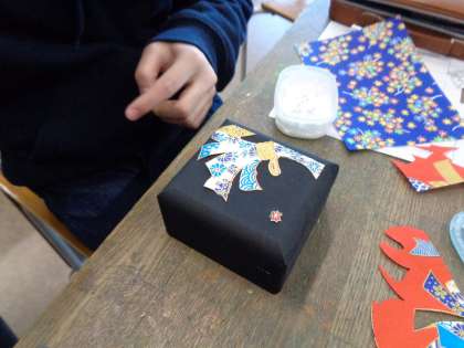 木の箱が、和柄のすてきな小箱になりました。